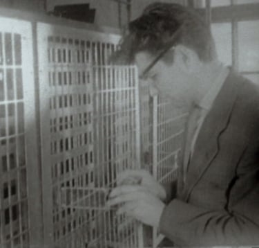 Donaldas Zanevicius at the first electronic computing machine ESM Lt1 designed in Lithuania. Special Construction Bureau (SCB) at the Factory of Computing Machines in Vilnius. April 28th, 1961.